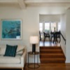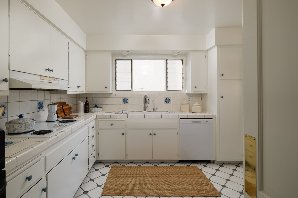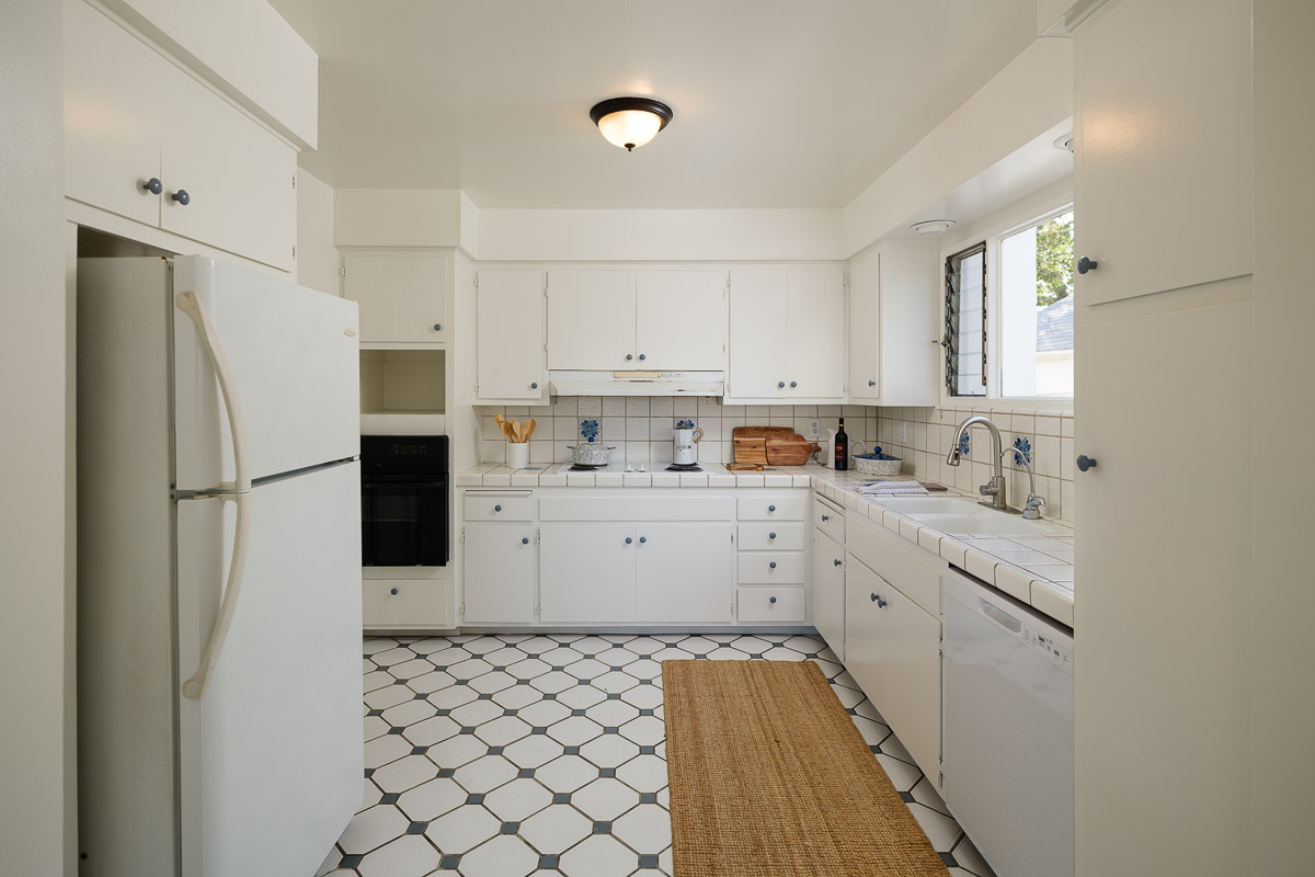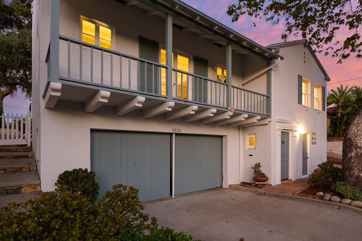 This gracious 1931 Monterey Colonial sits raised on a knoll with sweeping views. The 1,871 square foot house (measured, including bonus square footage) is filled with light as well as the character and grace of the period. There are enchanting architectural elements throughout the residence that would make it a pleasure to call home. The main two bedroom, one bath upper floor invites you in via an expansive living room, with a corner fireplace, built-in bookcases and French doors that open out to the wide front balcony that overlooks the beautiful landscaping below. The kitchen is absolutely charming and has an adjoining breakfast room where you can sit while sipping your morning cup of coffee. There also is a sun dappled dining room that steps out to the back patio that is ideal for entertaining or dinners under the stars.