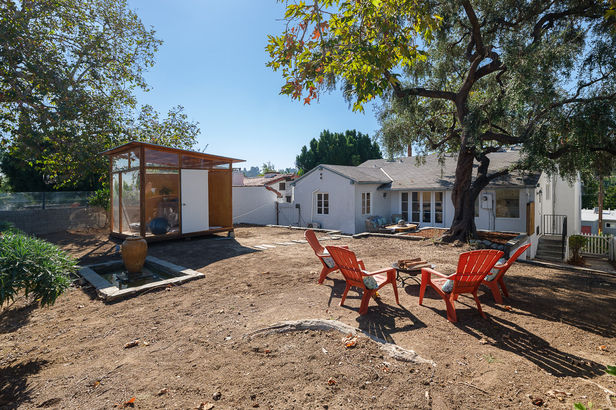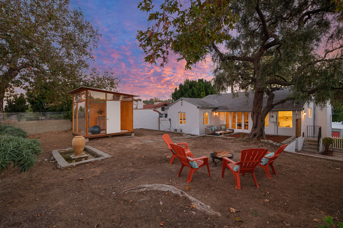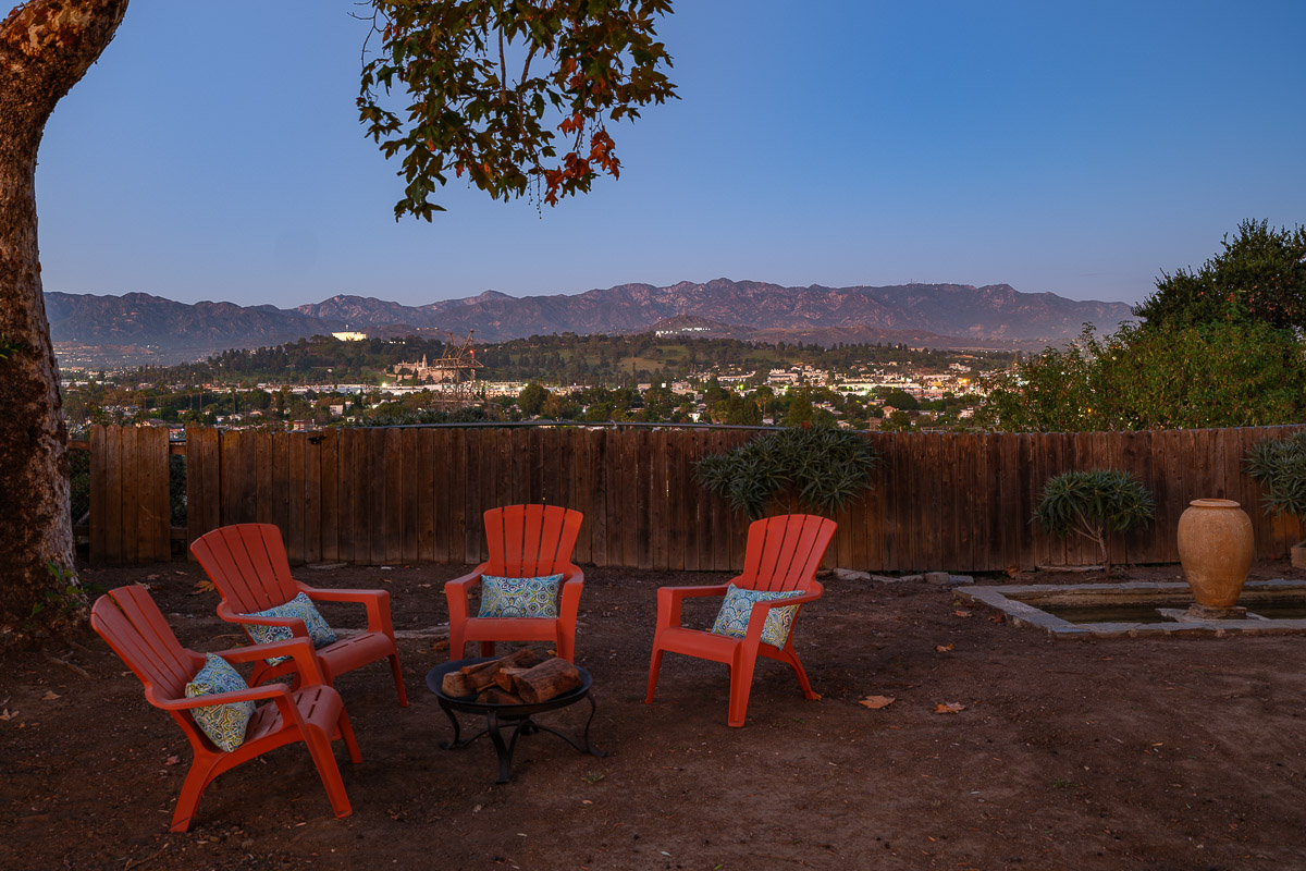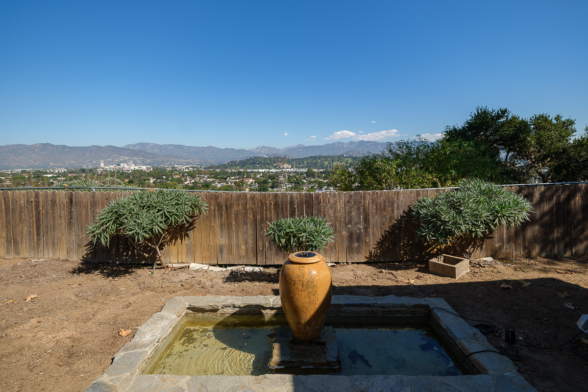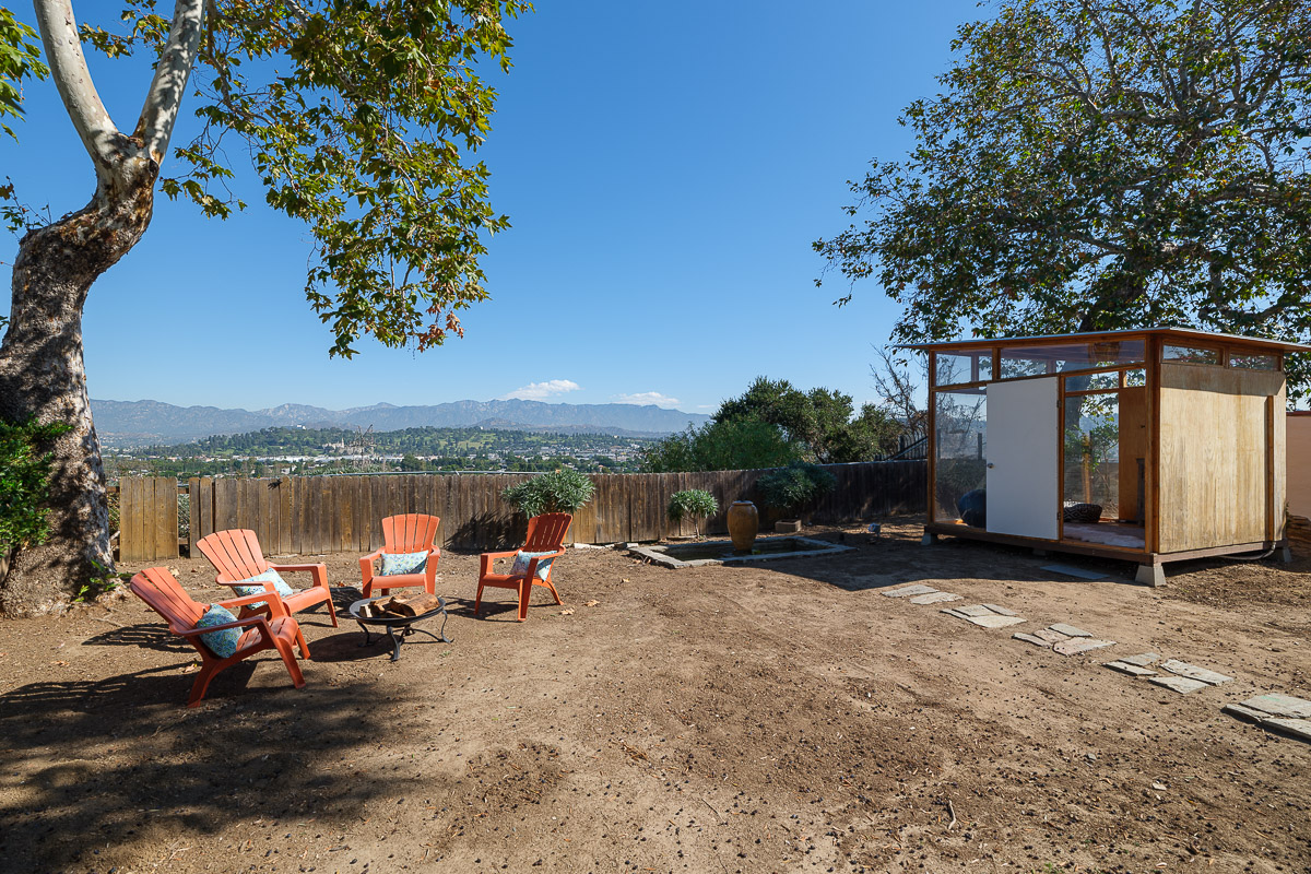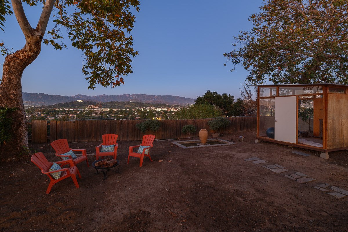The yard is sited to offer incredible views of the vistas below, as well as the city lights twinkling in the distance. The outdoor areas are spectacular with stunning sights to enjoy from every vantage point, as well as offering a separate outbuilding that could be used as an office, meditation place or a quiet retreat. The professionally landscaped parcel also has a serene, trickling fountain that creates a spa-like feel.